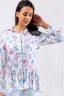 Замечательная блузочка! Очень нежный рисунок цветов, легкая приятная ткань. Хорошо сидит по фигуре, хотя я взяла размер побольше – обычно ношу 42-й, здесь взяла 44-й. Единственное, немного просвечивает, лучше надевать с футболочкой.