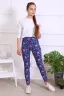 Леггинсы для девочек из трикотажного полотна кулирка с лайкрой, облегающие, длинные, сверху на резинке шириной 2.5 см. Низ и верх подогнуты.