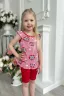 Маечка для девочки, по горловине и низу изделия оборка, на спинке завязки.