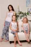 Пижама детская состоит из майки и бриджей. Майка с принтом полуприлегающего силуэта, бриджи свободные, без карманов низ обработан декоративной краеобметочной строчкой.