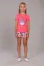 Комфортная пижама для девочки с ярким модным принтом "Кексы". Пижама детская состоит из футболки и шорт. Дизайн ткани позволяет использовать пижаму не только для сна, но и как костюм для дома. Материал очень мягкий и в то же время износостойкий, не скатывается и не вытягивается. Модель пижамы не сковывает движения ребенка во время сна. Покрой футболки свободный, шорты классические без карманов. Пижама выполнена из 100% гипоаллергенного хлопка, что позволяет коже ребенка дышать во время сна.