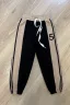 Брюки черные спортивные с бежевыми вставками для детей из трикотажного полотна. Штаны на поясе из эластичного трикотажа с резинкой внутри, низ брюк на манжете из эластичного трикотажа.