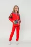 Костюм выполнен из футера двунитки. Комплект из брюк и худи на молнии с капюшоном. Яркие принты на плечах и в центральной части худи. Брюки выполнены в однотонном исполнении со стандартной линией талии.