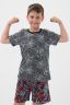 Пижама для мальчика, состоящая из футболки - однотонное полотно с нанесением печати и шорт - полотно с рисунком, выполнена из мягкой, приятной к телу трикотажной ткани средней плотности, 100% хлопок. Пижамка согревает, даже если ребенок ворочается и раскрывается во сне, а также создает ощущение уюта, ребенок спит глубже и реже просыпается. Также стильная пижама для подростков создает хорошее настроение. Можно носить как домашний костюм или использовать как летнюю пижаму, для дома или в садике. Пижамный костюм без карманов для полного комфорта во сне и застежек, свободного полуприлегающего силуэта, для комфортного сна ребенка. Пижамные шорты с удобной посадкой и нетугой резинкой. Яркий и модный молодежный пижамный стиль для детей и подростков, пижама для мальчика подростка.