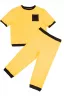 Уютный костюм для самых маленьких и немного постарше детишек. Футболка и брюки из приятного на ощупь футера двунитки. Удобные не стесняющие штанишки на широком поясе с манжетами по низу. Незаменим для повседневных прогулок, в детский садик или в качестве домашнего костюма. Легко стирается, не закатывается.