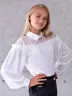 Блузка школьная для девочки с длинными рукавами, округлым воротничком и застежкой на пуговицах. Мягкий летящий материал и изысканные детали делают её стильной и удобной. Блуза украсит и дополнит любой образ в школу. Блузки хорошо смотрятся в сочетании с юбками, сарафанами и брюками. Блуза для девочки подходит для школы и праздников, как повседневная. Будет идеально смотреться на школьной линейке 1 сентября, день учителя, 8 Марта, выпускной или утренник. Школьная форма отлично сидит по фигуре на девочке, движения в ней комфортные. Кофту для девочки можно носить без дополнительной глажки, но рекомендуем отпаривать рукава блузы. Хорошо сохраняет цвет и форму при активной носке и после многократных стирок. Нарядная женская рубашка для девочки подходит под юбку, брюки, жакет, пиджак (детская одежда для подростков сочетается со школьной блузкой). Светлая блузка идеально подойдет, как круглогодичная одежда для школы. Белая подростковая блузка для девочки свободного силуэта. Блузка Соль&Перец длинный рукав. Подростковая блузка, свободного силуэта для девочки. Модель декорирована гипюром, пышные рукава на манжете украшены рюшей. Мягкая, воздушная ткань шифон хорошо драпируется, не тянется и не мнется, устойчива к разрывам. Прекрасно вольется как в школьный, так и в праздничный гардероб.