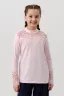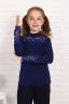 Блузка для девочек младшего и старшего школьного возраста, из трикотажного полотна – однотонная кулирка с лайкрой и кружева (дизайн и ширина кружева может меняться). Блузка прилегающего силуэта, с втачным рукавом, с воротником – стойкой. Спереди отрезная кокетка из кружева. На спинке отсутствуют линии членения. Рукав длинный одношовный. По низу рукава настрочено широкое кружево. Низ изделия подогнут.