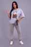 Стильная футболка с принтом из кулирки с лайкрой высокого качества пенье. Модель в стиле ОВЕРСАЙЗ, горловина округлая, короткий рукав, по низу передней полочки декоративный подхват в виде банта, гармонично сочетающийся с принтом, что придаёт изделию некую изюминку. Футболка - это универсальная необходимая вещь, присутствующая в гардеробе модницы независимо от фигуры и возраста