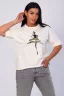 Футболка женская из кулирки с лайкрой высокого качества пенье. Модель свободного кроя, горловина круглая обработана обтачкой, цельнокроеный рукав длиной до локтя, низ спинки и рукав обработаны широким манжетом. Стильный принт, комфортная футболка придаст вашему образу индивидуальность и неповторимость, скроет недостатки и подчеркнёт достоинства фигуры.
