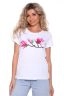 Футболка женская с оригинальным принтом, из хлопковой ткани с лайкрой. Ткань держит форму, не вытягивается, приятная на ощупь. Стильная футболка классического фасона. Посадка свободная. Такая модель подойдет абсолютно всем и станет необходимой вещью в вашем гардеробе.