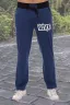 Брюки прямого кроя в стиле "casual". Карманы обработаны эластичной рибаной. На передне половинке брюк расположена контрастная печать. Пояс прошит на поясной машине. Спереди на поясе втачная планка с люверсами. Дополнительная регулировка пояса шнурком.