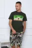 Костюм мужской с принтом на футболке на тему "Серфинг": футболка с коротким рукавом, шорты с боковыми карманами и комфортным эластичным поясом.