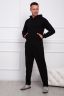 Костюм мужской: толстовка с брюками. Толстовка с карманом-кенгуру и с капюшоном. Рукава - реглан, на манжетах. Брюки на эластичном поясе, с боковыми карманами, с манжетами по низу брючин. Материал - плотный премиальный трикотаж с высоким содержанием хлопка (60%).