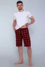 Мужские шорты прямого силуэта длиной до уровня колен на широкой резинке на поясе. Для удобства модель выполнена с боковыми карманами на передних половинках, вход в карман наклонный с декоративной притачной планкой. Пояс с эластичной тесьмой шириной в 4 см выполнен с декоративной отстрочкой на поясной машине. Шорты выполнены из хлопковой трикотажной ткани с принтом в виде "клетки", которая дышит, в меру эластична, не стесняет движений, очень удобна и комфортна в носке дома, на улице, на природе, на пляже и на занятиях спортом.