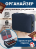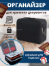Органайзер для хранения документов – это удобная и компактная сумка, которая обеспечивает безопасное хранение вещей в доме. Сумка для документов с замком изготовлена из прочной водоотталкивающей ткани, защищающей содержимое от пыли и грязи и превосходно впишется в любом офисе, Сумка под документы имеет качественную двойную молнию для быстрого доступа. Органайзер дорожный обладает прочным каркасом, который препятствует их деформации в путешествии. Органайзер офисный оснащен кодовым замком, который препятствует случайному открытию или взлому. Установите на замке комбинацию 000, затем нажмите и удерживайте фиксатор PUSH с двух сторон, далее с нажатой кнопкой установите новый код. Кейс для документов состоит из 4 отделений. Папка для документов выполнена из эластичной сетки.
