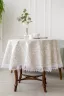 Круглая хлопковая скатерть отлично впишется интерьер любой кухни и станет главным украшением стола. Скатерть из рогожки повышенной плотности обработана кружевом по краю. Диаметр скатерти по ткани 150 см, плюс кружево шириной 8-10см.