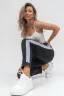 Молодежные брюки с длиной 7/8 и манжетом по низу, выполнены из футера цвета антрацит. По бокам брюк имеются карманы и светлые вставки. Пояс брюк обработан на специальной поясной машине. Брюки подходят как для спорта, так и для отдыха.