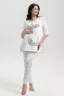 Пижама для беременных. Футболка с коротким рукавом, отделка - кант, принт на полочке. Брюки на манжетах, рисунок - огурцы