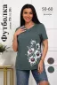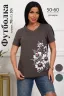 Футболка женская полуприлегающего силуэта из меланжированного трикотажа. Низ изделия прямой. Длинна до середины бедра, плечо на естественном месте, рукав короткий. Горловина V-образной формы, обработана планкой . Принт (шелкография ) на полочке с левой стороны .