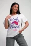 Футболка женская из гладкокрашенного трикотажа, хлопок 100%. Прямого силуэта, свободного облегания. горловина круглой формы. Рукав короткий. Низ изделия прямой. На полочке принт, шелкография.
