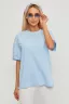 Купила эту футболку голубого цвета, очень довольна покупкой! Ткань приятная, мягкая, не раздражает кожу. Сидит свободно, не обтягивает фигуру. Удобно носить дома или на прогулке. Единственный минус – немного растягивается после нескольких стирок.