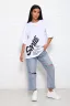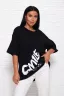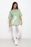 Модель свободного силуэта с принтом шелкография. Горловина круглая обработана обтачкой. Рукав спущенный, выше локтя.