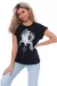 Футболка женская с оригинальным принтом, из хлопковой ткани с лайкрой. Ткань держит форму, не вытягивается, приятная на ощупь. Стильная футболка классического фасона со спущенным рукавом. Посадка свободная. Такая модель подойдет абсолютно всем и станет необходимой вещью в вашем гардеробе.