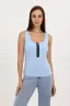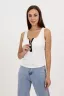 Майка из кашкорсе, прилегающего силуэта, средней длины, с квадратной горловиной. В верхней части полочки обработана молния. Горловина и проймы майки обработаны бейкой из основного полотна.