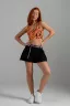 Топ на узких бретелях, с округлой горловиной на полочке и вырезом "борцовка" сзади. Горловина, проймы и вырез на спинке обработаны бейкой из основного полотна.