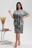Халат женский прямой, расширенный к низу за счет складки на спинке. Рукав цельнокроенный короткий с манжетой. Горловина округлая. Застежка на тесьму - молнию. Кокетка полочки и спинки, накладные карманы на полочке, манжеты рукава из отделочной ткани "в полоску", что придает изделию особую неповторимость. На отворотах манжет и карманов декоративные пуговицы. В боковых швах разрезы.