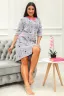 Халат женский на серебристой молнии выполнен из набивного велюра. Халат с рукавом 3/4, головина и карманы отделаны тканью контрастного цвета. Халат идеально подойдет для дома и отдыха.