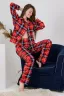 Костюм домашний. Кофточка с отложным воротником с цельнокроенными подбортами, на пуговицах, с манжетами. Свободный крой, спущенная линия плеча. Длина рукава в измерениях указана от точки основания шеи. Карманы в боковых швах брюк. Пояс на плотной резинке 3 см. 100% содержание натурального хлопка в полотне делает изделие невероятно комфортным и дышащим.