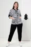 Костюм состоит из толстовки и брюк. Толстовка прямая, свободная, с капюшоном, на молнии. Рукав короткий, на манжете. На полочке расположены фигурные накладные карманы. Брюки на поясе, с боковыми карманами. В верхней части передних половинок по шву притачивания пояса расположены складки.