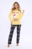 Костюм футболка с принтом + брюки. Сочетание ярко-желтой футболки с длинным рукавом и брюк в черно-белую клетку. На футболке принт с надписями.