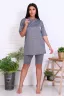 Костюм женский из масла. Состоит из велосипедок и футболки оверсайз. На полочке расположен карман с печатью. Рукав втачной.