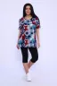 Женский комплект туника и бриджи. Туника из кулирки прямого силуэта длиной до бедер, с коротким рукавом. Бриджи из кулирки с лайкрой облегающего силуэта длиной ниже колен.