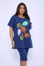Домашний костюм женский изготовлен из ткани кулирка - мягкого и гладкого трикотажного полотна из хлопка. Костюм женский для дома и отдыха состоит из удлиненной футболки и бридж. Футболка прямого кроя, горловина круглая, обработана окантовкой, по бокам карманы. Рукав короткий. На полочке выполнен принт. За счет свободного кроя, брюки очень удобны и комфортны в эксплуатации. Состав: 100% хлопок.