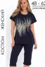 Летний костюм двойка для домашнего отдыха и сна из 100% хлопка. Футболка свободного кроя, удлиненная, с круглым вырезом горловины и коротким рукавом. Бриджи классической длины, прямого кроя. Мягкий и приятный к телу материал, обладающий высоким качеством, подарит вам настоящий уют на каждый день. Домашний костюм со штанами можно носить дома, на даче или использовать комплект как пижамный. Наш трикотажный костюм подойдет любой моднице. Такую домашнюю одежду для женщин можно использовать для йоги, активного отдыха, походов и прогулок весной и летом. Домашний костюм женский с бриджами с интересным рисунком соответствует моде и отлично подходит для повседневной носки. Домашняя одежда для женщин больших размеров подходит в качестве уличной, домашней и пляжной одежды. Пижама костюм яркого цвета с интересным рисунком соответствует моде и отлично подходит для повседневной носки. Дачный костюмчик больших размеров идеально подходит в качестве домашней одежды. Носите с удовольствием!
