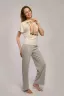 Молодежная стильная пижама-комплект для сна и отдыха из качественного вискозного материала, гарантирующего комфорт и удобство в носке. Комплект включает футболку свободного покроя со спущенным рукавом и брюки свободного покроя из лапши .