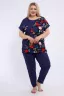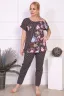 Женский костюм состоит из футболки со спущенной проймой и брюк. Игра полосок с добавлением цветов - этот костюм впишется в гардероб практически любой женщины. Широкий размерный ряд, удобный крой - подойдет на любую фигуру. Брюки с манжетами по низу и простроченной резинкой - можно носить как с кроссовками, так и с босоножками. В этом костюме - вы не останетесь незамеченной.