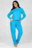 Легкий женский костюм прямого силуэта. Двойка выполнена в свободном стиле. Свитшот с округлой горловиной, на рукавах манжеты, снизу на кофте пояс. Брюки достаточно просторные, с поясом на резинке и с боковыми карманами. Комплект идеально подойдет для повседневной жизни, домашних дел и прогулок.
