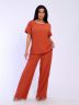 Отличная весёлая расцветка ярко зелёный костюм. Пошив аккуратный. Ткань не мнётся к телу приятная . Взяла на размер меньше!!! И всё в пору. Брюки длинные на рост 165 см. Благодарность данному магазину за прекрасный товар!!! Рекомендую