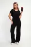 Универсальный женский костюм двойка, сочетающий в себе комфорт и элегантность. Модель выполнена из легкой приятной на ощупь ткани - атлас гофре, которая имеет гофрированную поверхность в рубчик , не мнется, держит форму, проста в уходе. Этот трикотажный костюм включает в себя футболку и широкие брюки палаццо. В нем вы будете себя комфортно чувствовать и дома, и на прогулке, на отдыхе, и на работе. Футболка со спущенным рукавом, что обеспечивает свободу движения, округлая горловина обработана обтачкой. Длина футболки ниже линии бедра. Брюки свободного кроя, слегка расклешенные книзу, удобный пояс на резинке. Стильный комфортный костюм, в котором удобно отдыхать, подчеркнет ваш вкус даже в простых вещах.