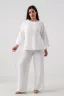 Женский брючный костюм из сингапура-это элегантное и удобное решение для тех, кто ценит стиль и комфорт. Он состоит из блузки и брюк свободного кроя на резинке с карманами.