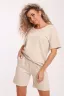 Костюм футболка с короткими рукавами и свободные шорты с карманами.
