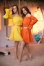 Молодежный костюм состоит из топа с открытыми плечами и с длинными рукавами, и мини юбки.