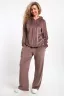 Костюм женский велюровый состоит из толстовки на молнии и брюк. Толстовка с глубоким капюшоном, по низу утягивающий шнур с фиксаторами, рукав спущенный с манжетом, брюки прямые с карманами. Костюм мягкий, удобный, отлично подойдет для дома, прогулок и отдыха.