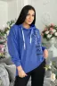 Костюм женский прямого силуэта, оверсайз. Толстовка и брюки. Толстовка с капюшоном, линия низа на полочке выше, чем на спинке. Брюки свободные, с внутренними карманами на передней части брюк и один накладной карман на задней половинке, низ брюк на манжете. На полочке и брюках модный принт. Характеристики указаны по готовому изделию