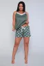 Этот женский комплект пижамы включает в себя топ на бретельках и шорты в горох. Топ украшен кружевной отделкой, что придает ему нежный и романтичный вид. Материал состоит из 95% хлопка и 5% полиэстера, что обеспечивает комфорт и приятное ощущение на коже. Идеальный выбор для уютных ночей и отдыха дома. Выбирайте лучшее от Руся трикотаж.