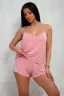 Пижама женская: топ на брительках и шорты с гипюровыми вставками.